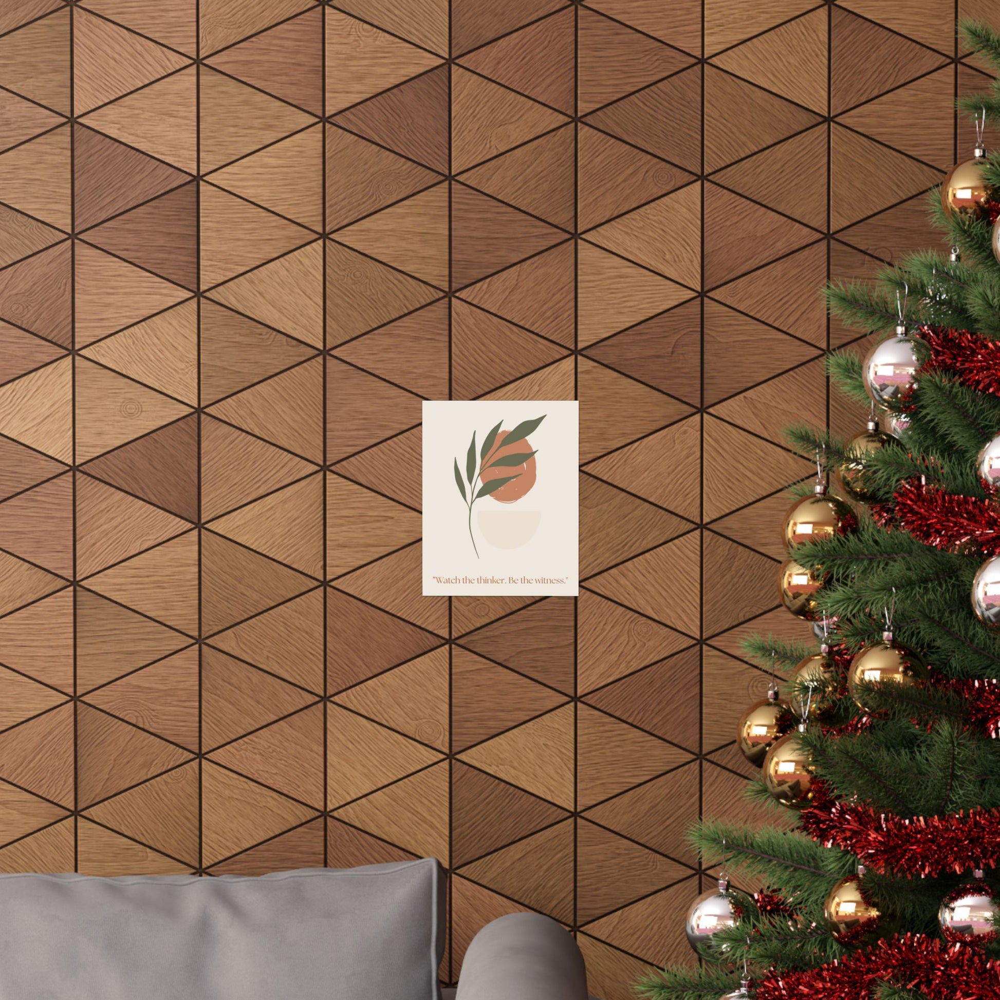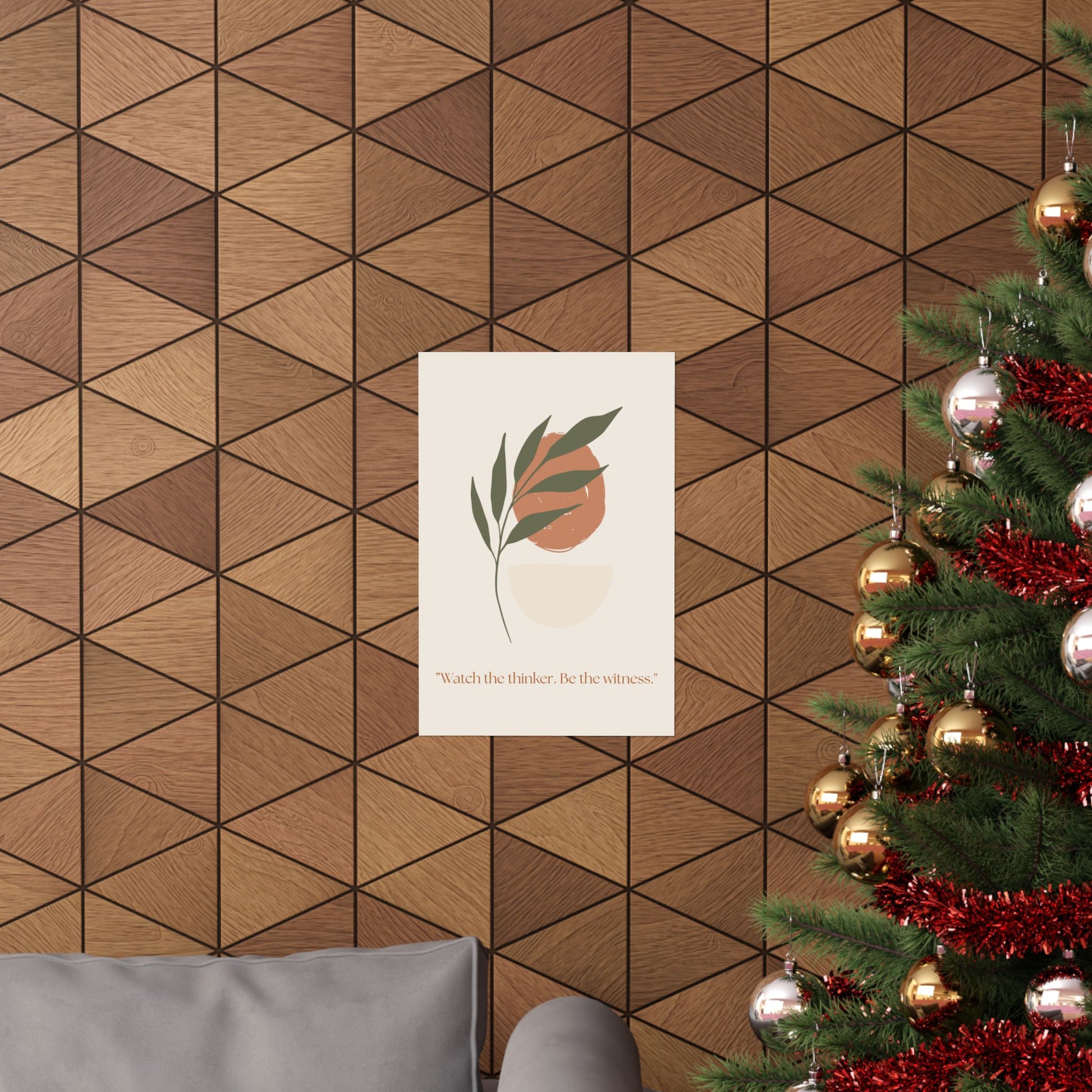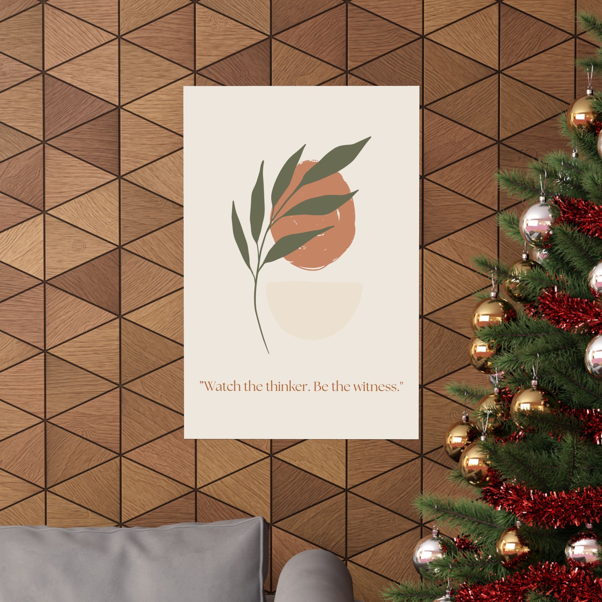 Soft, contemplative, and quietly modern — this matte vertical poster brings a calming, gallery-ready presence to any indoor space. Printed on museum-grade archival paper using Giclée inks, the artwork’s muted terracotta and sage palette stays vivid without glare thanks to a light-absorbing matte finish. The minimalist botanical composition and the gentle quote, “Watch the thinker. Be the witness.” invite slow mornings, reflective evenings, and mindful moments in bedrooms, home offices, or reading nooks. Available in many sizes to suit narrow walls or larger focal points, this print fits naturally into calm, neutral interiors and pairs beautifully with wood frames and layered wall arrangements.